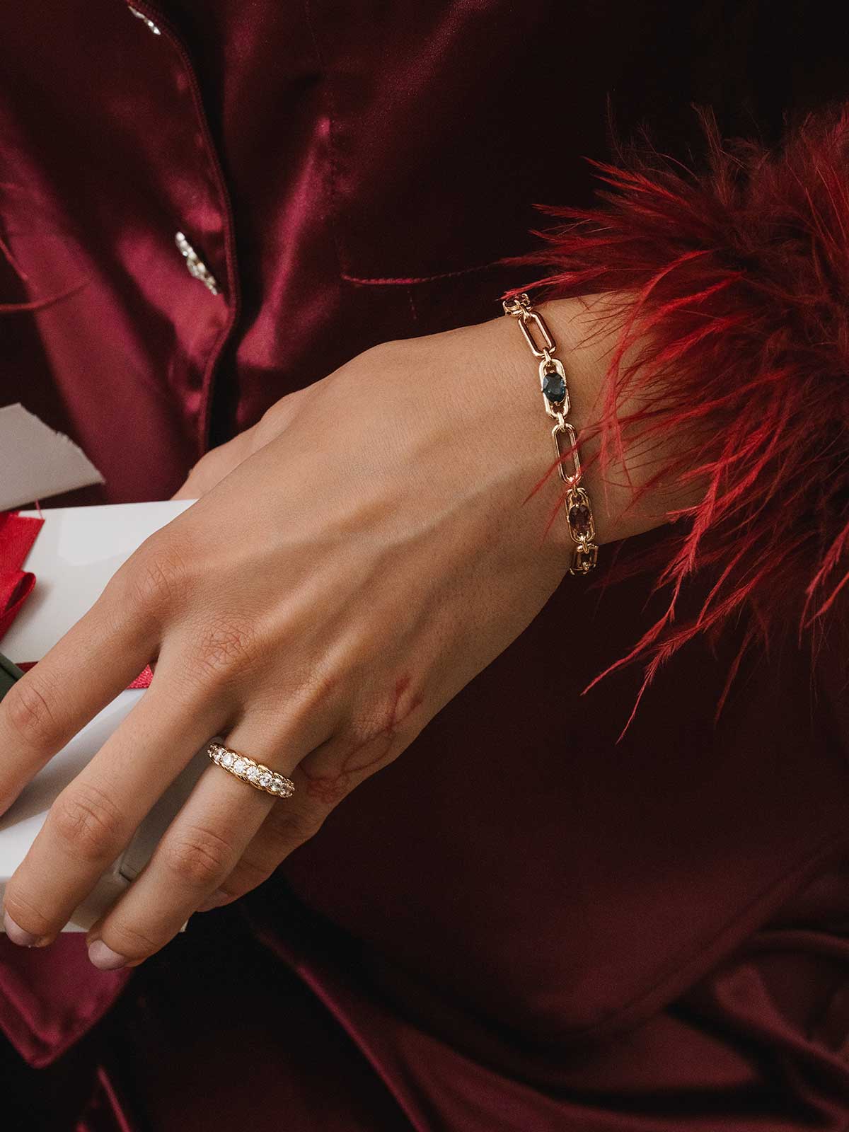 Warm tones and linked details give the Marlene Bracelet personality and movement. It transitions effortlessly from intimate dinners to festive gatherings, adding a lively accent to your wrist.
