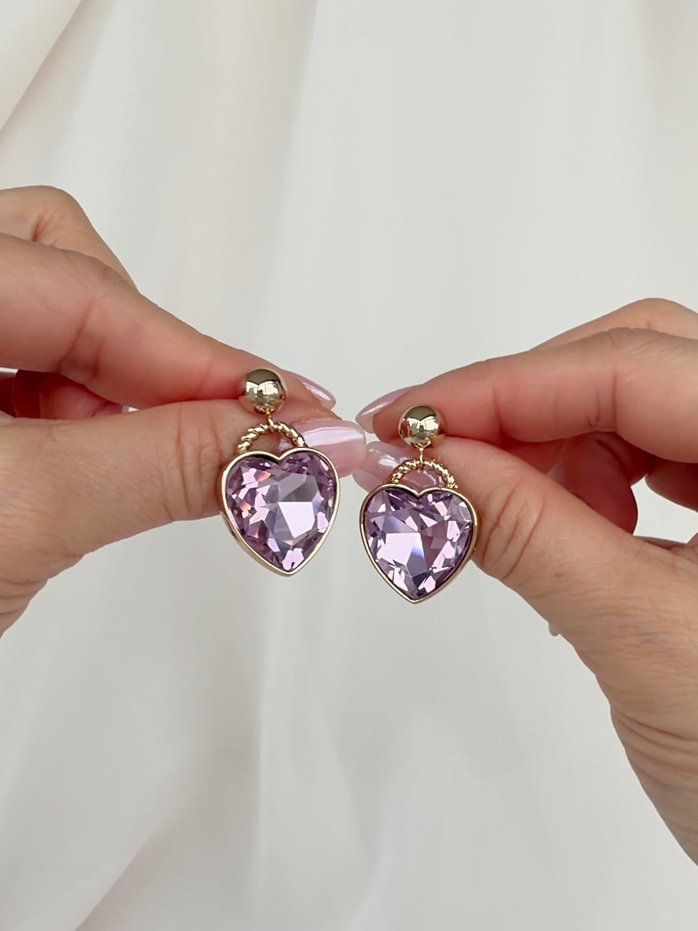 Heart-shaped drops with the cutest pink color and gold detailing. Made to give every outfit a touch of that first-crush flutter. A pretty, playful and a special addition to your jewelry line-up.